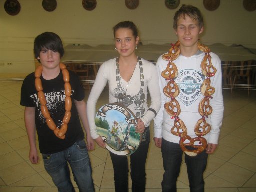 Jugend-Wurstkönig Dennis Ittner, Jugend-Schützenkönigin Julia Gumerov, Jugend-Brezenkönig Alexander Stiegler