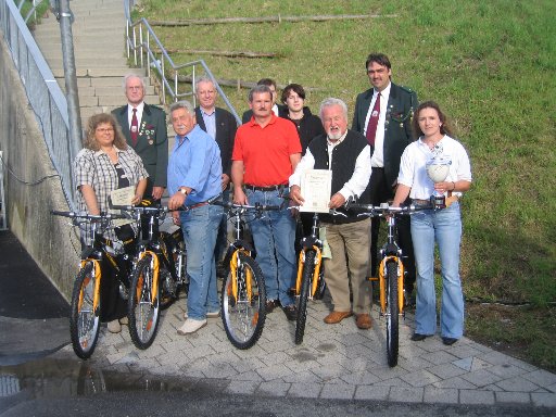Siegerfoto: 2. SM Thomas Kiefl, Julia Gumerov, Christoph Hoffmann, Thomas Retzer, Alfred Katzendobler, Alfons Saller, Peter Neubert, 1. SM Otmar Hübner