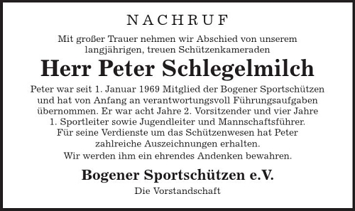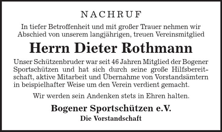 Die Bogener Sportschützen trauern um Dieter Rothmann