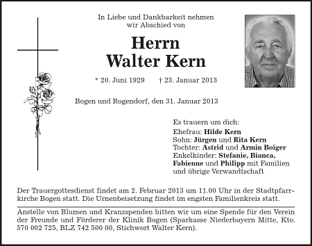 Unser Ehrenschützenmeister Walter Kern ist gestorben.