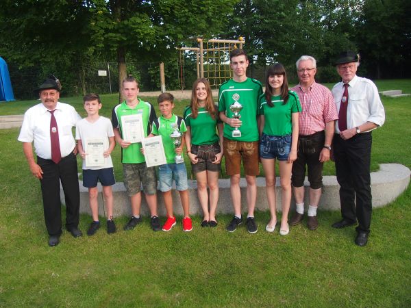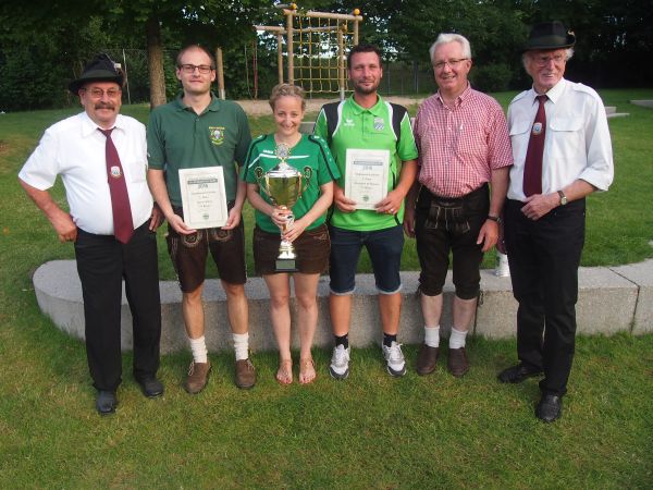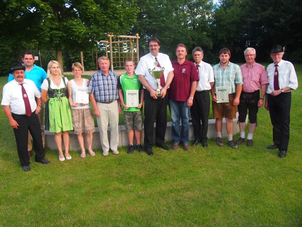 Bauleiter Rudi Mühlbauer und Angelika Mühlbauer; Niederbayerischer Schülermeister Ralf Haase und Anton Edelmann
