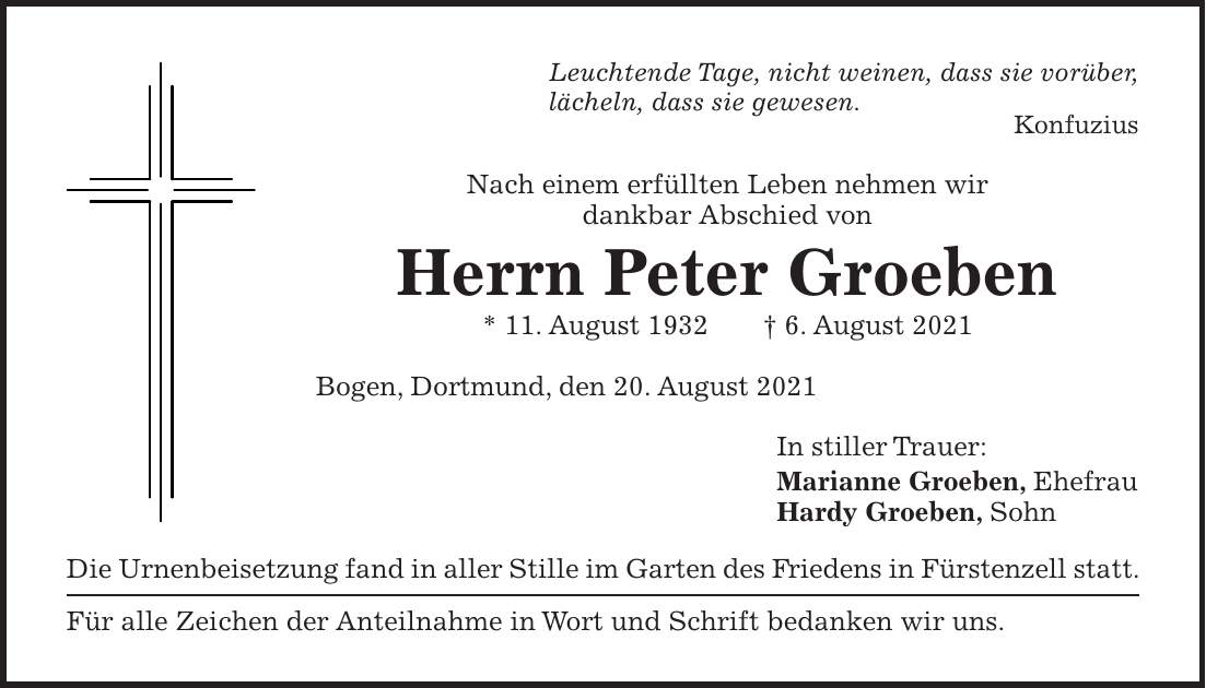 Ehrenmitglied Peter Groeben verstorben
