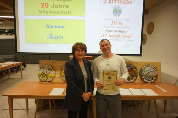 Roman Boger für 20-jährige Mitgliedschaft