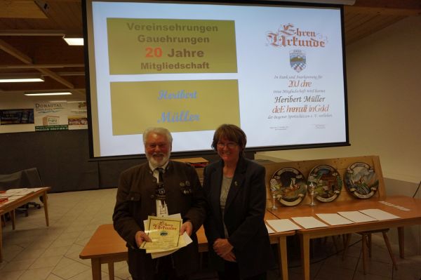 Heribert Müller für 20-jährige Mitgliedschaft