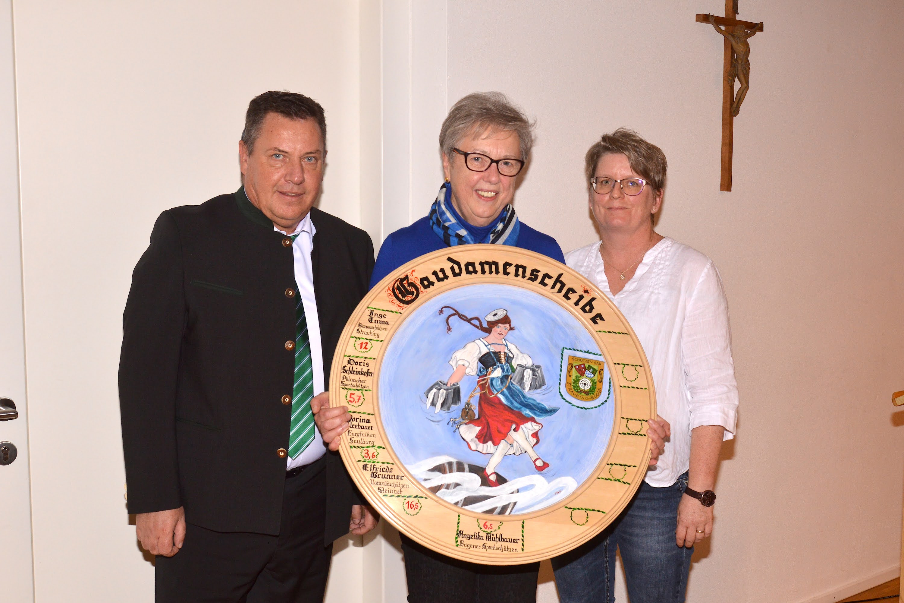 1. Schützenmeister Rudi Mühlbauer, 4. Platz Angelika Mühlbauer, Bogener Sportschützen, 29 Punkte; 2. Platz Andrea Peer, Sportschützen Hankofen, 31 Punkte; 1. Platz Patricia Wanninger, Sportschützen Atting, 32 Punkte; 3. Platz Christine Hollauer, Gemütlichkeit Hailing, 30 Punkte; Elena Rauscher, Alte Kameraden Aholfing, 28 Punkte; 1. Gaudamenleiterin Birgit Rosenhammer
