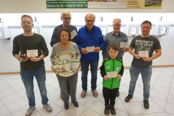 Bester Schuss des Tages und somit Gewinner des Osterpokales wurde Hannah Helmbrecht mit einem 1,0 Teiler.Der 2. Platz mit einem 6,0 (16,1) Teiler ging, wie im Vorjahr, an Rudi Mühlbauer und den 3. Platz sicherte sich Roland Saller mit einem 6,0 (24,1) Teiler.