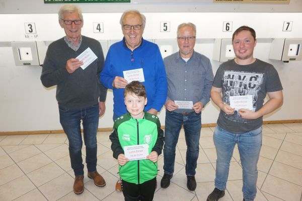 Die Schützen Leon Weidinger, Alexander Korschak und Luca Plocher freuten sich über den 2. Platz in der Manschaftswertung. Die 2. Mannschaft mit Jan Jacob, David Uttendorfer, Isabell Korschak und Tobias Jacob belegten den 9. Rang.